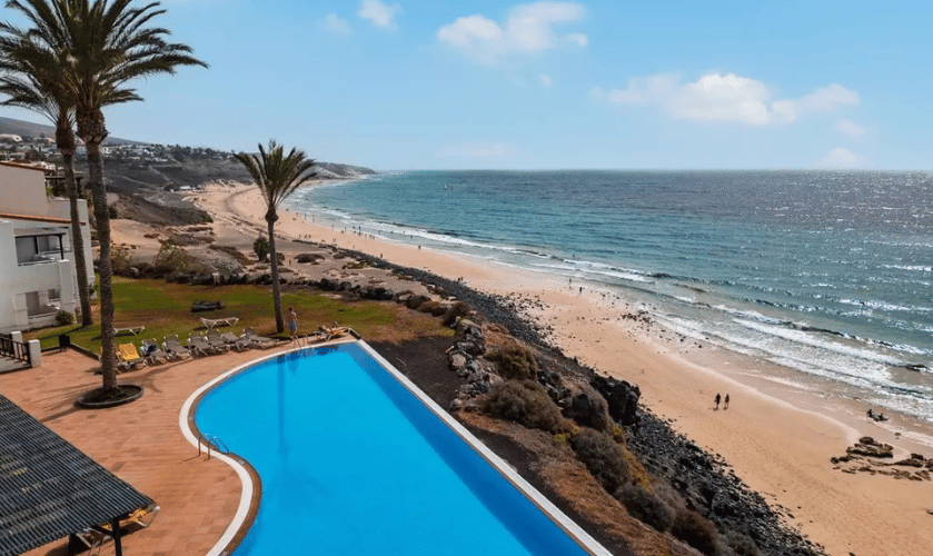 Affacciato sulla lunga e spettacolare spiaggia pubblica di Jandia, ideale per fare lunghe passeggiate: circa 3 km di spiaggia dal fascino incontaminato e con acque turchesi. La spiaggia è accessibile direttamente dal resort (attraverso una scalinata) e nelle immediate vicinanze si trova la zona attrezzata con ombrelloni e lettini a pagamento (fino a esaurimento). Teli piscina/mare gratuiti.